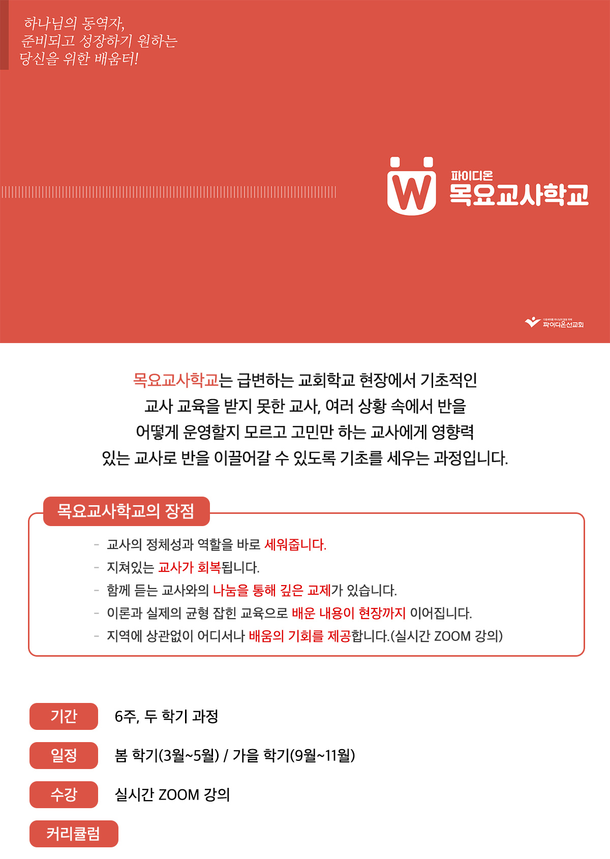 * 봄학기는 TJT 시리즈 "두근두근 신입교사" 교재를 교과서로 사용합니다. * 가을학기는 CEE 1-3 "한눈에 보는 성경" 교재를 교과서로 사용합니다. |