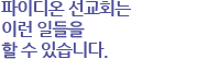 파이디온은 지난 35년 동안 꾸준히 사역을 해오면서 이러한 도움과 협력의 장을 만들 수 있는 역량을 비축해왔습니다. 이제 이 땅의 다음 세대 사역을 위해 새로운 소통의 장을 마련해야 한다는 필요에 부응하게 되었습니다. | |